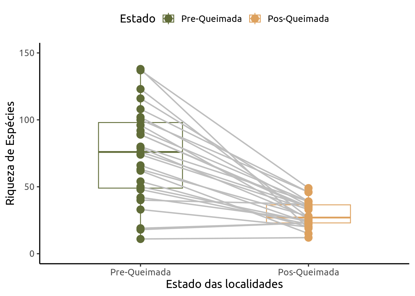 Novamente vamos utilizar dados do pacote ecodados seguindo o exemplo disponível em Da Silva et al. (2022). Vamos utilizar dados de riqueza de espécies de artrópodes em uma área antes e depois de um processo de queimada.