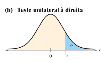 Rejeitamos \(H_0\) se o valor de \(t\) calculado cair na cauda direita da curva (maior que \(t_0\)).